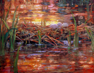 Julie, I can visualize the events of this painting so well after reading this. I see you at your easel whipping those reeds into place. Nests and reeds...now that is probably where you went wrong...I think they would be REALLY difficult AND tedious subjects to paint...ESPECIALLY with a deadline! What a fighter you are though. It's just lovely.
